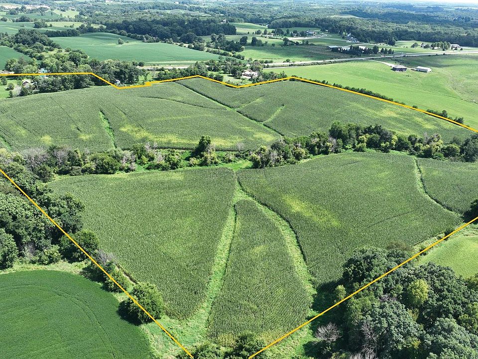 45.21 acres, m/l, located 2½ miles north of Iowa City, Iowa on the west side of Iowa Hwy 1. This farm has an estimated 37.23 FSA/Eff. crop acres with a CSR2 of 51.30. The two-story house was built in 1921 and contains 1,631 square feet\ of finished living space. The main level features a kitchen, dining room, living room, and one bedroom. The refrigerator and gas stove are included with the property. The second floor has three bedrooms, one bathroom, and a finished attic space. Most of the living areas have solid wood flooring and trim. The basement is block construction and contains an LP hot water heater, pressure tank, breaker box, fuse box, and two sump pits. The forced-air heating and air conditioning unit was installed in July 2024. Outbuildings include a 24’ x 24’ garage, a 56’ x 30’ barn, a 24’ x 22’ crib, a 26’ x 30 foot shed with an 8’ x 26’ lean-to addition. This is an attractive rural setting located north of Iowa City, along Highway 1. It includes a farm house with out buildings and rolling cropland with a small creek.