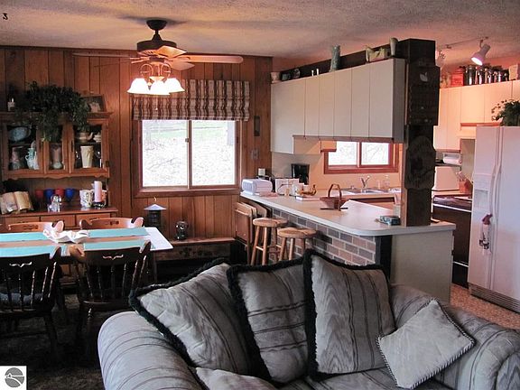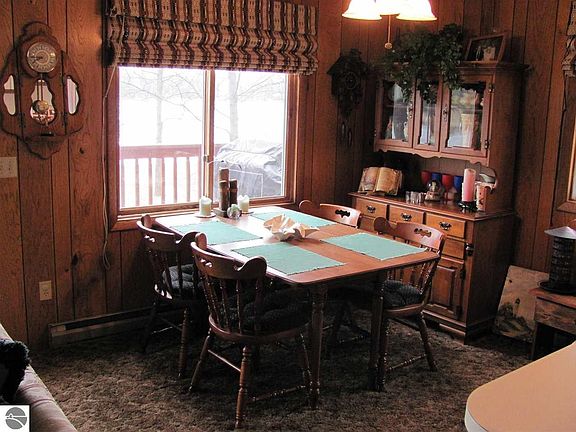 200 feet on Big Island Lake. Gambrel Style year round home with 4 bedrooms, bathroom on each level, open living room, dining area and kitchen, Brick wood burning fireplace, balcony off upper bedroom with slider- great view of the lake. Large wrap-around deck and a 16x16 wood deck to sit on and enjoy the view. All of this on 4 lots. Plus a 16x26 garage.