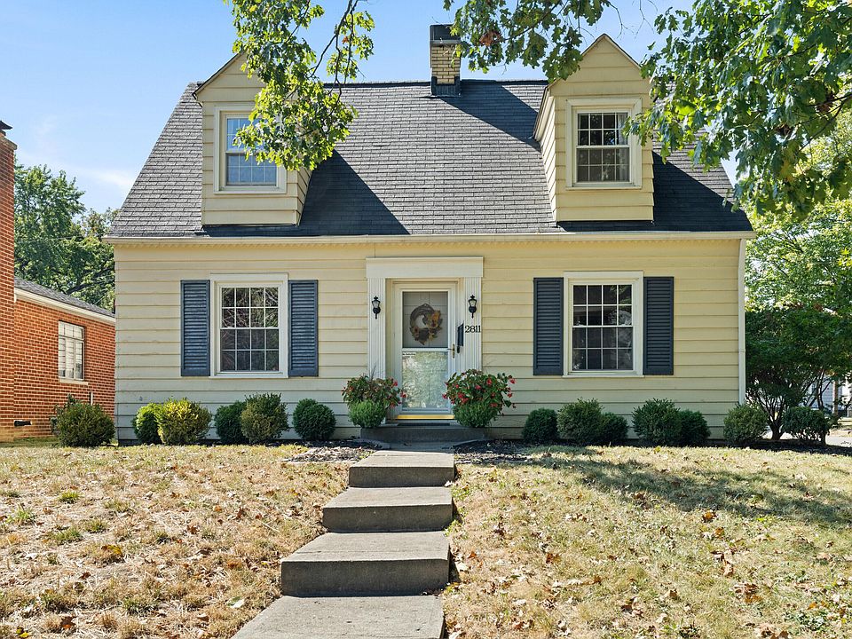 This storybook Clintonville Cape Cod home is loaded with character and thoughtful updates throughout. Beautiful hardwood floors, a bay window, charming built-in bookcases set the stage, and a gas log fireplace in the living room adds warmth and coziness. A Dutch door and enclosed breezeway featuring knotty pine walls and two new entry doors (2018) lead to the attached two-car garage (with new garage doors in 2019), additional parking pad, and private brick patio overlooking a large fenced yard with a garden and green space. Upstairs, the spacious primary bedroom offers abundant storage and gleaming wood floors, while the second bedroom features great storage space.