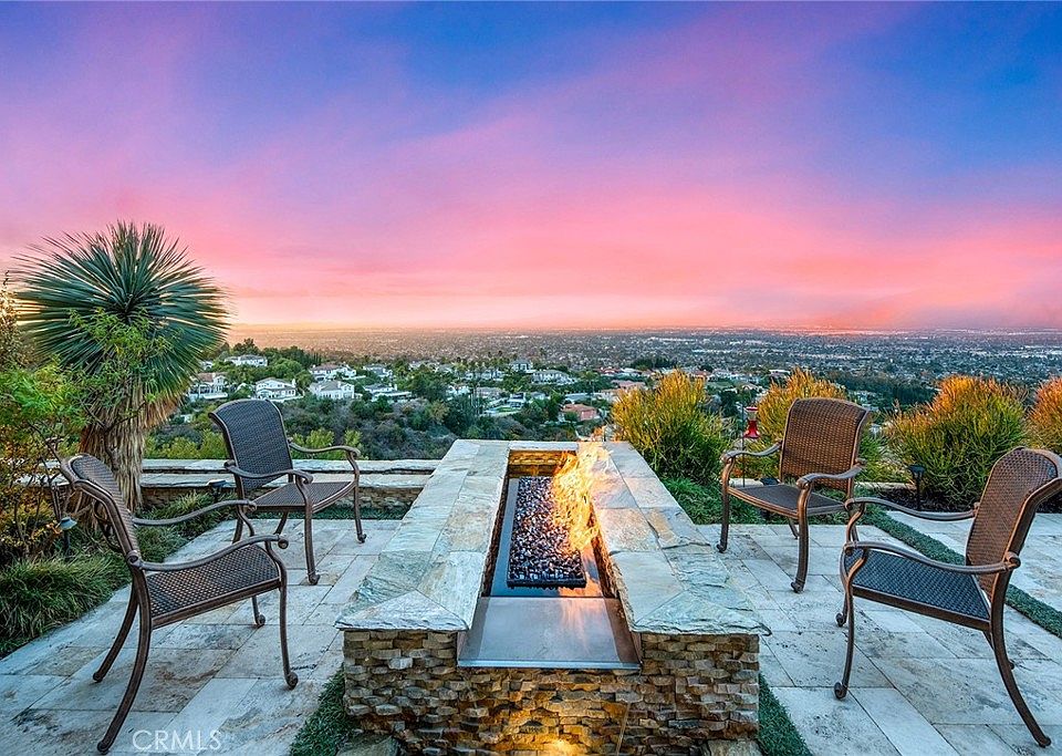Spectacular 180 degree panoramic views of the San Gabriel mountains and the city lights 600 feet below highlight this luxurious custom home, situated on one of the highest and best prime view lots in South Hills Estates. Built in 2015 and thoroughly upgraded inside and out, this magnificent estate offers incredible unobstructed views, from downtown LA to San Dimas, and the ultimate privacy of having no neighbors immediately below. First time on the market since 2015, this estate has 4 bedrooms and 6 bathrooms, with a dual desk office downstairs. A grand entryway with vaulted ceiling and chandelier provides a majestic entrance. Oversized open living area offers an astonishing mountain and city view from every corner. Large formal dining room connects through the butler’s pantry into the highly upgraded gourmet kitchen, offering a large center island with extraordinary ceiling height matching granite backsplash, premium Thermador appliances and 2 oversized walk-in pantry rooms. Upgraded multi-slide glass doors with UV-resistant clear film, and built-in surround sound speakers seamlessly extend the inside living area to the spacious outside California room, making it perfect for entertaining large family gatherings and guests. Beautiful wood flooring and carpet throughout. Impressive designer wall treatments in various bedrooms, bathrooms and common areas. A downstairs bedroom suite with its own private bathroom, small refrigerator, sink and walk-in closet is perfect for a multi-generation family lifestyle. Going upstairs, you will find an enormous loft area and 3 spacious suites with their own private bathrooms. The master bedroom has its own expansive, romantic covered deck, with a breathtaking panoramic view from the buildings of downtown to the west to Mt. Baldy to the east. The beautifully appointed master bath includes a large shower and two-person jetted bathtub, dual vanities and dual walk-in closets. The backyard, created by renowned landscape designer, features a granite BBQ island, large water feature and water-surrounded firepit. Many fruit trees such as avocado, persimmon, lemon, kiwi, nectarine, etc. Other features include dual-zoned central air conditioning and heating, no HOA, and one of the best locations with true panoramic views in the exclusive South Hills Estates.