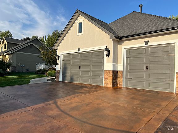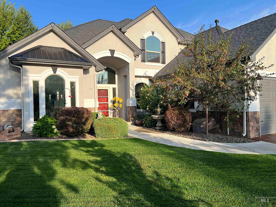 Exquisite custom home with exceptional upgrades in an ideal Meridian location only minutes to the Meridian I-84 entry/exit ramp!The gourmet kitchen boasts maple custom cabinets, slab granite, 3 ovens, breakfast bar, large eating area, upgraded new appliances. Large beautiful formal dining room for those special occasions.The living room with a fireplace and plenty of light with full windows looking out to the expansive backyard including a covered patio with a fountain and hot tub. Luxurious primary suite is located on the main level with custom CA walk in closet with built in drawers and a custom walk-in tile shower. 4 bedrooms/3.5 baths plus a bonus/flex room that could serve as a 5th bedroom. Beautiful home office, perfect for working from home. Finished oversized garage, 35 ft RV parking, dual heating/AC, 12x16 insulated shed.
