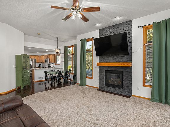 Gas fireplaceFinished lower levelPrivate deckVaulted ceilingsUpdated lightingGranite kitchen countertopsOpen-concept living