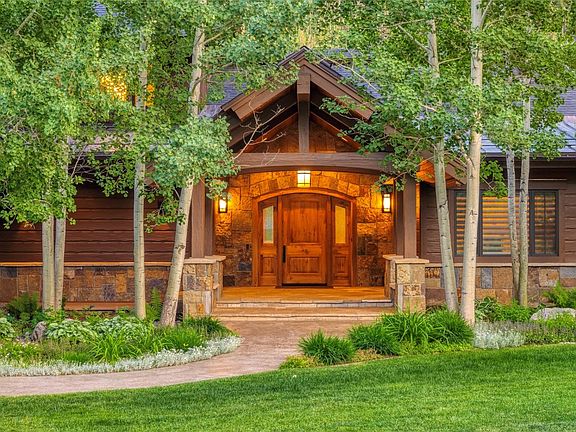 Luxury and style await on the banks of Fish Creek. This remarkable home incorporates 4 bedrooms, 5.5 baths plus office and family room with main level living, gorgeous custom finishes and excellent outdoor amenities. As you enter the home you’ll find a generous great room blended seamlessly with a gourmet kitchen and dining area offering both casual and formal gathering spaces for sharing meals, excellent conversation or lively entertaining for any number of guests. The adjacent outdoor spaces allow for overflow in the summer with plenty of covered and open areas along with a sunken hot tub, dry sauna and outdoor fireplace. The primary retreat is a spacious oasis within earshot of the sounds of Fish Creek offering a private deck, a luxurious bath with steam shower, soaking tub, dual vanities plus makeup vanity and walk-in closet. Upstairs you’ll find a fabulous game/family room with wet bar for casual entertaining or family movie nights. Rich elements of walnut flooring, leathered granite counters, Miele appliances, and custom wood cabinetry create an inviting atmosphere. All of the bedrooms offer ensuite baths and other comfortable and functional features include an oversized 3-car garage with workbench, central vacuum, air conditioning, heated drive, walks, and patios, large mud-room with boot driers, a large walk-in pantry with wine refrigerators, Crestron home automation system, wood burning fireplace with gas conversion option, newer high fire rated roofing materials and so much more. Easy access to the Sanctuary Trail and National Forest beyond allow for day hikes right out the back door yet the proximity to the ski area base, shopping and fine dining make this location unbeatable.