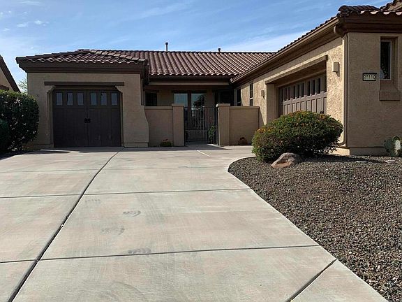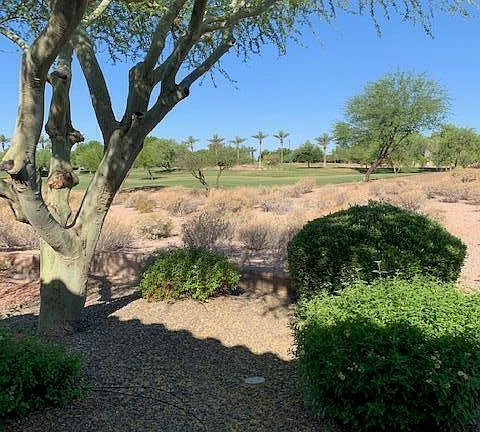 an ACTIVE ADULT COMMUNITY. The view goes on forever. No houses across the golf course. You have mountain views and incredible sunsets. This is Accredo model with 2 bedrooms/2.5 baths/den. Has a courtyard in the front and a patio in the backyard so you are never without sun. Open floor plan with dining room; family room; morning room; den; seating area and laundry room. SS appliances and granite countertops in the kitchen, partially remodeled. Tons of cabinets. Upgraded new floors too. Master bedroom has door to patio and bay window. Lots of privacy since golf path is on the other side of the course. Close to the front of the community and all the amenities. 48 hour notice is required while tenants are in residence.