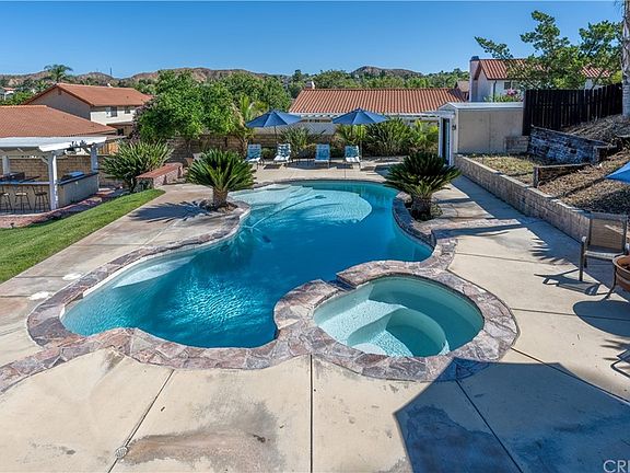 This stunning home sits on huge lot with pool and RV parking. Amazing floor plan boasts 4 large bedrooms plus added media room. Ideally situated on one of the largest lots in the neighborhood with a dream entertainers backyard complete with pool, spa, outdoor kitchen and detached guest quarters. Once inside the home you are greeted with an open floor plan with high ceilings. The beautifully remodeled kitchen has ample counter space with granite counter tops, custom cabinetry, all Viking appliances. Kitchen opens to family room with cozy fireplace. Designer details include hardwood floors thru out the home, shutters, neutral paint and ceiling fans just to name a few. Downstairs hosts amazing media room that can also be used as a bedroom/office and leads to lovely backyard. Powder room downstairs and don't miss the Harry Potter room. Upstairs unwind in the luxurious primary bedroom. Here you can relax in remodeled oversized shower/tub complete with dual shower heads. Completing the second floor is the other 3 large bedrooms with a substantial upgraded bathroom. Relish the gorgeous So Cal weather and entertain friends and family in the dreamy backyard. Here you can lounge or swim in the pool, decompress in the spa or gather around the outdoor kitchen. This incredible setup includes patio cover with speakers, T.V's granite wrap around counter tops,built in refrigerator,sink and built in BBQ. Its truly ones private mini resort. Freshly painted on the outside. 2 car garage complete with plenty of storage including in the attic. True gated RV parking. Cul de sac location. A must see.