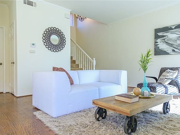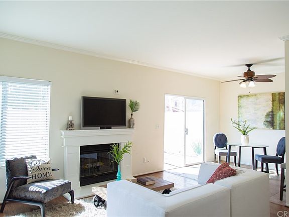 Stunning townhome located in the Brock Canyon Villa community. This residence boasts two bedrooms and two baths, with tons windows and natural light. This unit features gorgeous hardwood flooring, tile and plush carpet in bedrooms. Living room with wood burning fireplace, dining room and kitchen offer brand new quartz counters. The backyard is one of the largest in the tract, it offers ample space to grill, relax and entertain year round. Master bedroom with 10 ft high ceilings, two closets, bathroom with dual sink vanity. There is ample storage throughout, tons of built-in cabinets in the garage. Situated within an excellent award winning school district and conveniently located within close proximity to restaurants and retail. This home is a must see - won't last long!