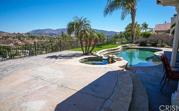 Gorgeous View pool/spa home! View of mountains and lights see forever! Fantastic floor plan Huge kitchen with island all granite counters..spacious eating area ..built in desk area..High volume ceilings in family room with built-in entertainment center & fireplace ..Private formal living & dining rooms. Office downstairs plus separate bedroom area with full bathroom.. Huge Master suite over looking view ..Master Suite bath..Upstairs has 2 large secondary bedrooms..plus a loft/gameroom with a computer niche!! Pebble tech pool/spa with incredible views covered patio and built in BBQ..features 3 car garage ... Close to freeway access and schools and shopping..A Must See!!!