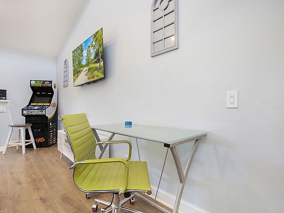 Green private backyardDedicated workstationClassic arcade gamesCentral ac and heatingWasher and dryerFully equipped kitchenPool table
