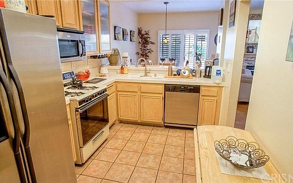 QUICK CLOSING IN30-45 DAYS - Three Bedroom Town Home, Upgrades include Shutters, Tile Counter-Tops, Vaulted Ceiling, Fireplace, Built-in Barbecue with TV & Fridge & a Patio Cover. Two Car direct access Garage. Huge Backyard & Side yard on a Corner Lot. Turn Key Home in Move-in Condition. Well located Community includes a Community Pool & Spa. Great Schools, Safety, Shopping & Annual Events. Close to Central Park, Valencia Mall, Golf, Tennis, Lakes