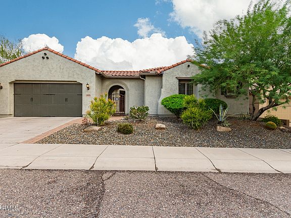 Welcome to this stunning 3,241 sq ft ranch-style home, adjacent to a quiet cul-de-sac and backed by the Sonoran Desert Reserve offering direct access to hiking, biking, adventures and starry nights. Inside, a spacious, open-plan layout features neutral tones, hardwood flooring in the living room with a stone accent wall, and wood-like tiles throughout. This 4-bed, 3.5-bath home includes a dedicated office space, intelligently placed away from the bedrooms. The private primary suite offers backyard views, a spa-like bathroom with double vanities, a soaking tub, and a large walk-in closet. The gourmet kitchen is a chef's dream, boasting granite countertops, stainless steel appliances, and a large island. Plenty of storage and a perfect view of the backyard complete this space. This home is a smart investment thanks to a fully paid solar system, translating to effectively zero electricity bills for the current owner even with EV charging. New HVAC systems (Aug 2024) and a new water heater (Mar 2022) ensure peak efficiency and low costs. The backyard features a lush grassy lawn and covered patio, while a paved courtyard with a water feature greets you at the front. Located in the highly desirable Fireside at Norterra community, you have access to a clubhouse with a gym, heated pool, spa, and tennis courts. Enjoy quick access to shopping, dining, and the I-17 freeway.