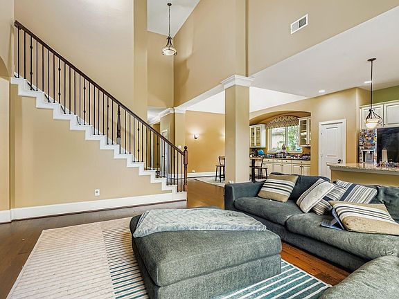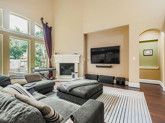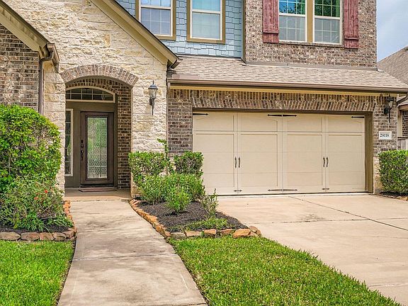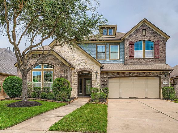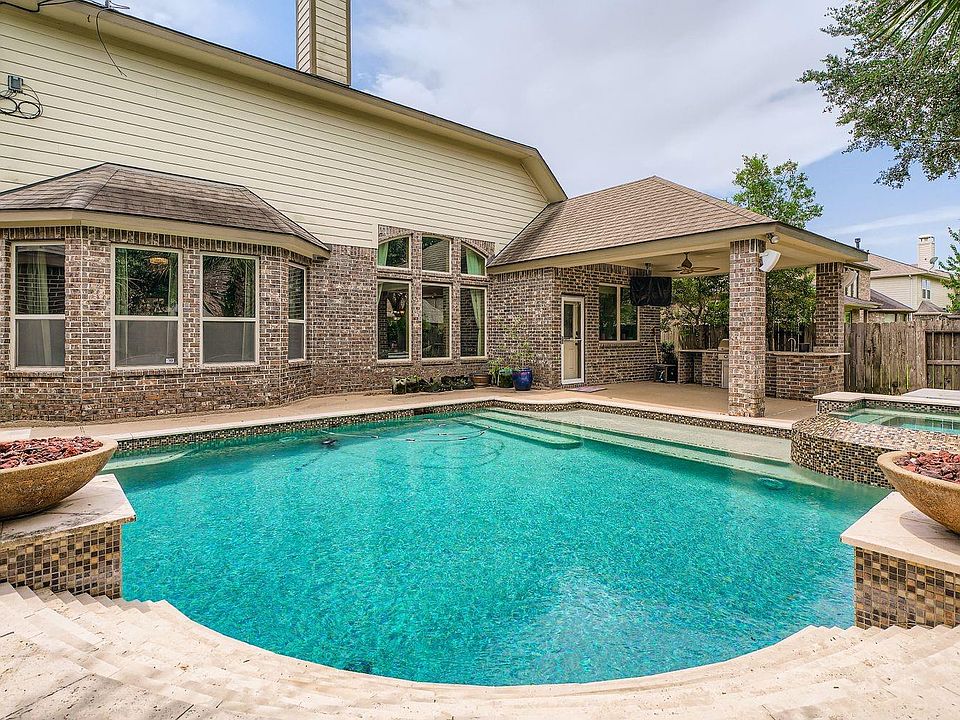 Welcome to 28118 Harper Creek Ln, a beautifully finished 4-bed, 4-bath Cinco Ranch home featuring warm tones, wood floors, and crown molding. The open-concept kitchen with granite counters and stainless appliances flows seamlessly into a bright living room with a cozy fireplace and wall of windows. The primary suite overlooks the pool and offers a spa-style bath, while a rare second bedroom with full bath is also conveniently located on the first floor. Upstairs includes two additional bedrooms, a spacious game room, and a media room. Outside, enjoy a private retreat with a sparkling pool, covered outdoor kitchen, and built-in firepit—ideal for entertaining. Zoned to top Katy ISD schools, this home delivers the full Cinco Ranch lifestyle close to trails, parks, shopping, and dining.
