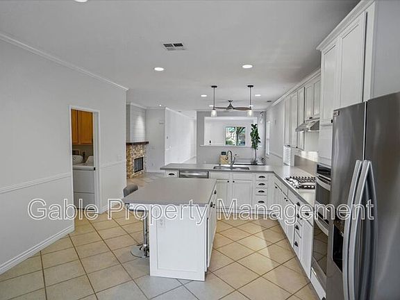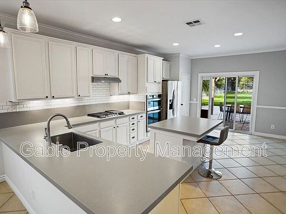 Welcome to this stunning single-story home located in the highly desirable Cambridge community! Tucked away at the end of a peaceful cul-de-sac, this property offers a rare combination of privacy, space, and scenic viewscomplete with one of the largest backyards in the neighborhood. Step inside to discover a bright and inviting living space, featuring tile flooring, recessed lighting, and a large front window that floods the room with natural light. The open-concept layout connects the spacious living room to the dining area, where you'll find a ceiling fan and a charming stone fireplace, perfect for cozy evenings. The beautifully remodeled kitchen is the heart of the home, boasting white custom cabinetry, a large center island, breakfast bar, stainless steel appliances, upgraded countertops, and a stylish subway tile backsplash. Designer light fixtures and a generous pantry add both elegance and function. Crown molding and chair rail accents enhance the home's custom appeal, while fresh, neutral-toned paint creates a warm and cohesive feel throughout. The home features three well-sized bedrooms, including a luxurious primary suite with high ceilings, a ceiling fan, walk-in closet, and a private ensuite bathroom. Enjoy dual sinks with a vanity area, a soaking tub, and a separate walk-in shower. The hallway bathroom is equally impressive with dual sinks and an upgraded vanity. Additional highlights include a separate laundry room, an attached two-car garage, and direct access to the backyard through sliding glass doors. Step outside to your private oasisan entertainer's dream! Enjoy a covered patio, lush landscaping, a winding path to the rear of the yard, and expansive views with no rear neighbors. Conveniently located near parks, schools, shopping, dining, and freeway access, this home offers comfort, style, and convenience all in one. Don't miss the opportunity to make this exceptional property your next home!