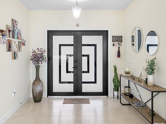 Welcome to this stunning, nearly new home built in 2022, located in Lehigh Acres, Florida. This property is located outside the flood zone! Each bedroom features custom closet organization. The upgraded concrete slab surrounding the home offers additional patio and entertainment space. Elegant light tile flows throughout the interior, creating a bright and modern feel. Each room has Zebra Shades which offer sheer and solid light filtering. The garage has been converted into a versatile mother-in-law suite, perfect for multigenerational living or hosting guests. The home office is an added bonus. The kitchen is equipped with wood cabinets, soft-close drawers and cabinets, and granite countertops. Step outside to a covered patio and a spacious backyard complete with additional storage. Bienvenido a esta impresionante casa casi nueva construida en 2022, ubicada en Lehigh Acres, Florida. ¡Esta propiedad se encuentra fuera de la zona de inundaciones! Cada dormitorio cuenta con closets hechos costume. Tiene concreto que rodea todo el alrededor de la casa ofreciendo un patio adicional y espacio para entretenimiento. Losas elegantes se extienden por todo el interior, creando una sensación luminosa y moderna. Cada habitación tiene cortinas Zebra Shades que ofrecen un filtrado de luz transparente y sólido. El garaje se ha convertido en un cuarto suite para los suegros o también para usarlo como un efficiency, perfecta para la convivencia multigeneracional o para alojar a visitas. La oficina en casa es una ventaja añadida. La cocina esta equipada con gabinetes de madera que tienen gavetas y puertas con cierre suave y el counter top de granito. Salga al patio cubierto y al espacioso jardín trasero, que cuenta con almacenamiento adicional.