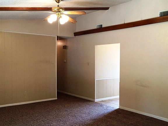 Three bedroom, two bath & fireplace with a partial conversion office nook area off of the garage, large back yard with patio. This University Pines bricked & a slab foundation home has updates & recently replaced the fence & roof, carpet was replaced Sept 2014.