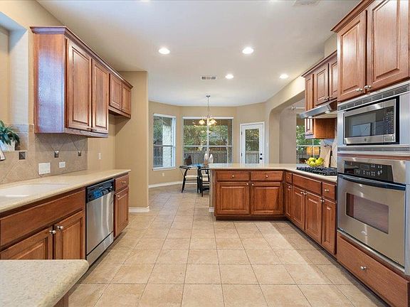 Stunning two-story home nestled on a generous lot along the quiet, tree-lined streets of Estates of Bauerle Ranch, offering 4 bedrooms, 3.5 baths, and multiple living and dining spaces designed for flexible living. Charming curb appeal welcomes you with a spacious front porch and an inviting foyer with soaring ceilings, a formal dining room, and a graceful staircase. Walls of windows fill the open-concept layout with natural light, highlighting the living room’s dramatic ceilings and cozy fireplace. The gourmet kitchen features a gas range, breakfast bar, abundant cabinetry, pantry, and ample workspace—perfect for cooking and entertaining alike. The main floor boasts a large primary suite with dual vanities, garden tub, walk-in shower, and walk-in closet. A second main-level bedroom with en-suite bath and walk-in closet offers the ideal space for guests, in-laws, or a private home office. Upstairs, a spacious bonus room anchors two additional secondary bedrooms and a full bath. Step outside to your private backyard retreat with a large covered patio surrounded by mature shade trees—ideal for entertaining or quiet relaxation. Enjoy top-rated schools (Baranoff, Bailey, Bowie) and fantastic community amenities including a pool, parks, playground, and miles of hike-and-bike trails. All just minutes from shopping, dining, and nightlife at Menchaca District, Sunset Valley, Arbor Trails (Whole Foods, Costco), and a quick drive to Downtown Austin and ABIA.