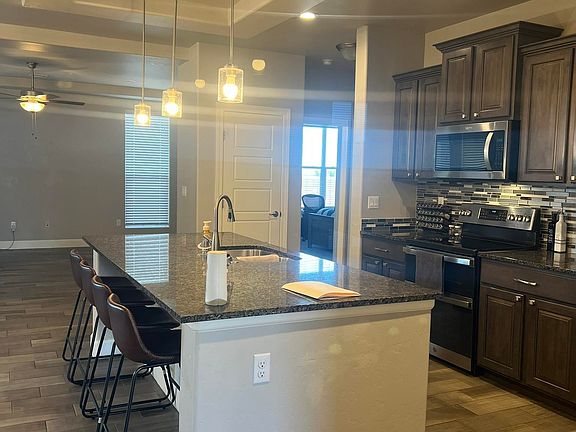 Welcome home to a five bedroom three bath spacious home. This home has 3008 square feet to give you plenty of room to live. This is a two story home with bedroom space downstairs and upstairs. Downstairs we have a formal living room or bonus space, a formal dining open to a kitchen featuring appliances and two pantry spaces, a nice size living room, one bedroom and a bathroom. Moving to the upstairs living space we have a living room space, a primary bedroom with a nice bathroom featuring a large walk-in closet, soaking tub and separate space for toilet and large walk in shower. Upstairs features three more bedrooms of average size with nice size closets, and an oversized laundry room with shelving and ample space. The home features granite throughout, tile in the main living areas downstairs and the bathrooms. Nice tile backsplash in all the wet areas and kitchen, and tiled showers. Carpet on the stairways, formal living room and in the upstairs living areas and bedrooms. This is a very comfortable home with a neutral gray paint throughout and white trim, everything matches well. The garage allows for three vehicles with one space being in front of the garage and a double car garage door. The front yard is nicely landscaped and features a sprinkler system. In the back yard you will find a covered patio, cinderblock fence around, a fire pit on a concrete slab built for it, a storage shed with concrete around and in front of for an outdoor patio area, and a set of above ground garden boxes. This area could use some grass or other landscaping and has a sprinkler system in place. If you are looking for a large space for a growing family, or a home that offers an in home work space, or room for entertaining, this is definitely the home for you. We don't have many homes this size or with 5 bedrooms in the market very often, take advantage and make this your home. Call for an appointment to see it.