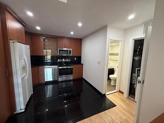 New kitchen, Granite counter tops, granite floor, new modern bathroom, central air condition/heat. Balcony. Washer/dryer incl. hardwood floors in living room.