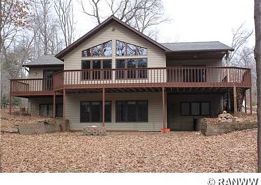Beautiful waterfront home - low bank to water. Navigable to Lake Menomin!Close to city yet easy access to I-94. Features lg open concept, walk-in closets in all bedrooms, dual zone heating & floor to ceiling windows in living room - great views of water! Lower level walk-out finished, hot tub in lower level family room, New roof in 2014. Att. heated garage w/workshop area (wired for 220V)& lg detached 34x46 garage (w/100 amp service) w/15x46 loft area for extra storage. Garden & perennial beds!