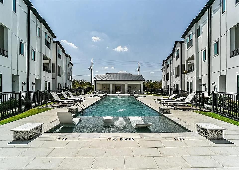This gorgeous 2 bed, 2.5 bath house is the perfect find. A modern, poolside townhome located just 5 minutes away from the Med Center. The corner unit features tons of natural light with an outdoor balcony and an unobstructed pool view. Enjoy the benefits of staying in a prime location with a gorgeous resort-style pool for the perfect blend of luxury & convenience. The second floor covered balcony is great for hosting or relaxing. The primary bedroom has two walk-in closets, a spa-like bathroom complete with a caretta marble shower & large soaking tub. The second bedroom is equipped with an en suite bathroom. The gated community features a pool, two well lit dog parks & extra guest parking for family & friends. This is a split level duplex in which another tenant lives downstairs with a private entrance. There are no shared spaces. Minutes to NRG Stadium, Rice Village, Downtown Houston, Galleria, Energy Corridor, Hwy 610 & 288. Internet, Water & Trash Included in Rent