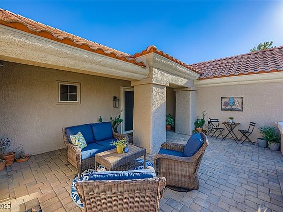Gorgeous, immaculately maintained, and fully remodeled, this stunning home in Sun City Summerlin is a must-see. Featuring 2 bedrooms and 2 bathrooms, this charming residence combines modern upgrades & style. The interior boasts beautiful tile flooring and six-inch baseboards throughout, creating a seamless & polished look. The updated kitchen showcases crisp white shaker cabinetry, while the inviting living room features a custom fireplace and stylish TV wall. Thoughtfully upgraded, the home includes a newer AC and furnace, a water softener, RO system, and security screens on all windows and doors. Step outside to a large, pool-sized backyard offering endless potential for outdoor enjoyment. The front courtyard is meticulous and fun with paver stones. Every detail has been carefully attended to, making this home completely move-in ready & an effortless purchase in one of Las Vegas’s most desirable active adult communities.