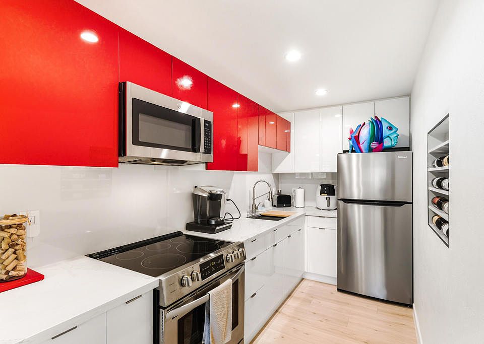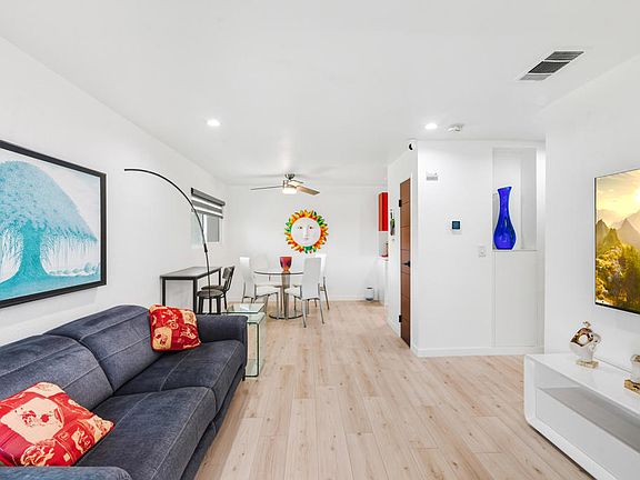 Welcome to a beautifully updated upstairs end unit in the highly desirable Palm Springs Villas II community. This stylish retreat blends comfort, design, and location--perfect for a full-time home, a seasonal escape, or an investment opportunity just minutes from the heart of Palm Springs. As one of the few end units with an additional side window, this home enjoys extra natural light and an airy, open feel throughout. Step inside to discover a bright, modern living space featuring an open-concept layout and panoramic mountain views from nearly every room. The living and dining areas open to a private balcony where you can relax with your morning coffee or unwind as the sun sets behind the San Jacintos. The kitchen is a showstopper--sleek quartz counters, stainless steel appliances, and European-Modern cabinets that even Iron Man would approve of. Every detail has been thoughtfully considered, from the upgraded flooring and recessed lighting with dimmers to the modern finishes that create an effortlessly sophisticated vibe. The bathroom has been completely reimagined with a walk-in glass barn-door shower, quartz vanity, and designer touches throughout. The spacious bedroom offers generous closet space and a serene atmosphere ideal for rest and recharge. Both the bathroom and bedroom fitted with custom Mahogany doors. Set within a gated community known for its lush landscaping, residents enjoy access to multiple heated pools and spas, tennis courts, putting greens, and beautifully maintained open spaces. Covered parking and plenty of guest parking make life here both easy and enjoyable. And yes--you own the land! Whether you're looking to invest, downsize, or simply live the desert lifestyle, this fully furnished, move-in-ready condo has it all. Come experience modern Palm Springs living at its best!