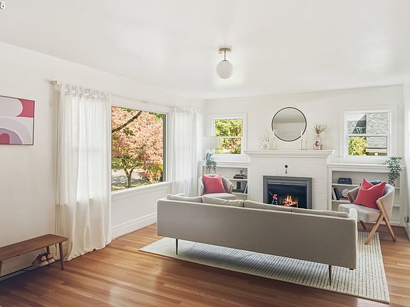 Offer Deadline 3pm 10/19. Alameda Charmer with Heart and History. Perfectly perched on a quiet, tree-lined street in the heart of Alameda, this Tudor-inspired bungalow has that rare mix of charm, sturdiness, & soul. Step inside and you’ll feel the care that’s been poured into it over the years — original hardwoods glow in the sunlight streaming through energy-efficient windows, the sense that this home has always been well loved. The generous entry welcomes you with a walk-in coat closet (with its own window, of course) & opens to the living room centered around huge windows & a wood-burning fireplace. Through the formal dining room you’ll find a cozy kitchen & sunny breakfast nook — ready for your creative touch when the time is right. Two main-level bedrooms & a full bath round out the first floor, while upstairs, a half bath, two more bedrooms, including a large primary with a charming nook, & a large unfinished attic, are waiting to become the primary suite of your dreams. This home has more storage & ample closets than a typical 1927 home, making it extra functional. While the kitchen and baths are ready for your modern touch—most major systems & structural updates have already been completed. For example, the basement is waterproofed, the foundation bolted, new sewer line, water main, updated plumbing & decommissioned oil tank— all the quiet, important upgrades handled. Out back, the sun-soaked yard is private and full of promise, while the detached garage with a full attic offers storage galore or an ADU opportunity. And the location? Just a few blocks from Alameda Elementary, Guilder Coffee, Garden Fever, Lucca, & WILD Pet Provisions — a little pocket of Portland that feels both peaceful & perfectly connected. Loved, cared for, and full of good vibes — perfectly poised for its next story. [Home Energy Score = 2. HES Report at https://rpt.greenbuildingregistry.com/hes/OR10241694]