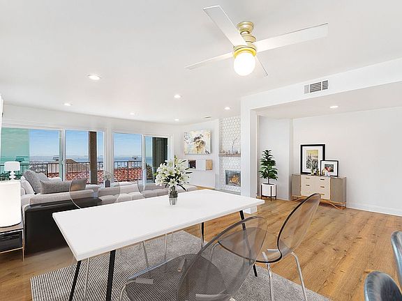 Exquisitely remodeled ocean and harbor view Penthouse in the heart of Coastal San Pedro. This sophisticated and open, light filled 2 bed + 2 bath with no common walls, has faux wood extra long french oak floors, chef’s kitchen with Calacatta Quartz counters and waterfall bar, Carrara Marble backsplash with solid brass inlay, full size dual convection oven, 30” cooktop with 18k BTU burners, Kraus Black Granite undermount sink, new windows, new recessed LED lighting, new central AC + heat, washer + dryer in unit, and brand new electrical throughout. Luxury ceramic tile baths with full LED shower panels and body sprayers create a spa like experience. The cozy fireplace and open floor-plan lead to a breathtaking oceanfront balcony for majestic sunsets and cool coastal breezes. 2 separate car spaces + secure garage parking with additional storage locker + storage room. Minutes from beaches, parks, historical sites, and LA Waterfront.