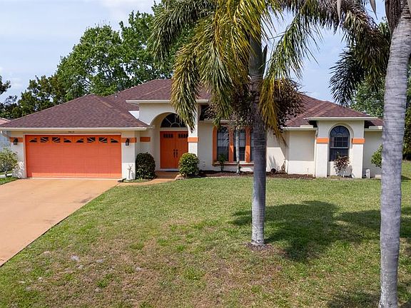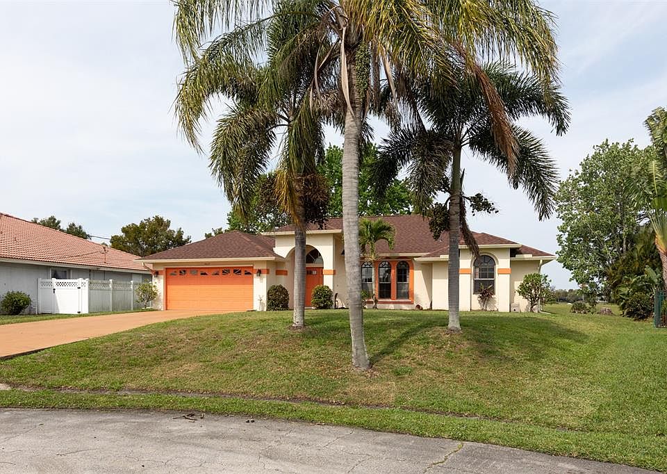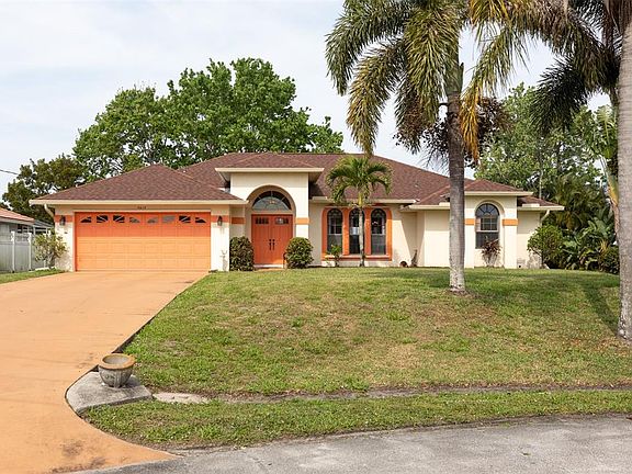 BACK ON THE MARKET! BUYER FINANCING FELL THROUGH. HOUSE PASSED ALL INSPECTIONS. ROOF 2022. This 3 bedroom, 2.5 bath, 2 car garage home is Move in Ready! Beautiful tropical oasis with several mature trees on the property located on an oversized cul-de-sac lot with relaxing water view. Freshly painted and new vinyl flooring in the Master Bedroom. Ceramic tile and vinyl flooring throughout. Features include an eat-in kitchen, formal dining room and living room, vaulted ceilings throughout with tray ceiling in the Master Bedroom. Master Bath has a Roman tub, dual vanity with separate shower. Master Bedroom has French doors leading to a covered Lanai. Kitchen has matching stainless appliances. Laundry room complete with washer/dryer. Garage with a utility sink for quick cleanups.