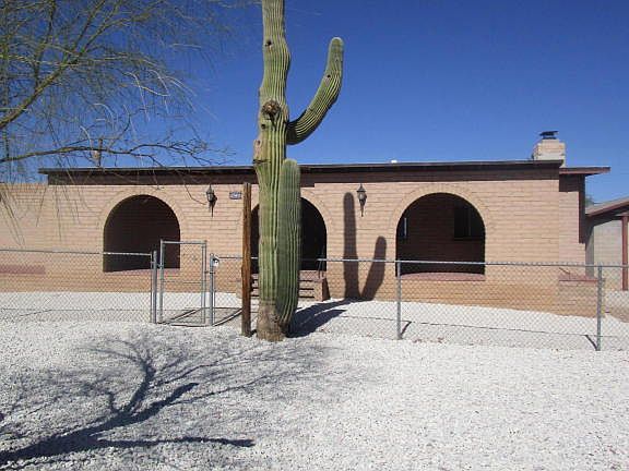 Beautiful Southwestern slump block, 2BR/2BA home, 2 car garage with elevated ceiling, fenced .43 acre lot, Front Porch with 3 Arches and brick floors plus Enclosed Courtyard w/water fountain, potential guest quarters/storage (600 sq. ft NOT included in total...has utilities) Amazing rock wall with Fireplace, WOOD BEAMS in Great Room & Master BR. DOUBLE INSULATED MAIN HOME(Fiberglass + 1'' thick Styrofoam sheets)LOW COST UTILITIES! NEW ROOF 2017, NEW PLUMBING 2016 (Main home), NEW hot water heater 2016, fresh paint & NEW laminate flooring & carpet 2018. UPGRADED ELECTRICAL 2017 plus 3 NEW SMOKE DETECTORS, A/C and forced air heat IN MAIN HOME. Fully fenced property with 3 large gates and 1 walk in gate. Main home comes with a 1 YEAR home warranty! No HOA so you can have RV's or boats ...