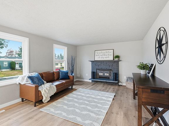 MOVE IN READY! Beautifully upgraded Shadle home. Inside you will find New kitchen with shaker cabinets, butcher block counter, custom back splash and stainless appliances New Laminate floors and carpet throughout. HGTV style bathroom with subway tile and LVP flooring. Newly paint top to bottom. Has a cozy woodburning fireplace with insert for those cold winter nights, and a brand new gas furnace with central AC. Outside was just repainted, newer roof, vinyl windows, sprinkler system, and a 1 car garage with alley access. This house has a lot to offer for the price. Come take a look!!