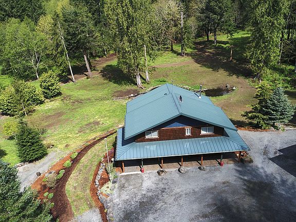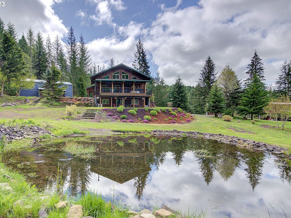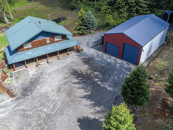 CUSTOM HOME ON 10 PRIVATE ACRES, BACKING UP TO APPROXIMATELY 47,000 ACRES OF FORESTLAND. 4 bedrooms, 3 full bathrooms, 2592 square feet, built in 2005 using wood from the property and brought in from Goldendale. Vaulted living room with pellet stove. Updated kitchen has lots of counterspace and cabinets, gas range, plus newer stainless appliances. Vaulted primary bedroom upstairs has two closets and bathroom with walk in tile shower. Loft and second bedroom both upstairs also. Main floor has third bedroom with direct full bathroom access. Downstairs has a bedroom/office, full bathroom and living area with a second kitchen. Perfect setup for separate living quarters including exterior access. Covered back deck overlooks the private pond and yard. Large 48 x 30 shop has a 10' and 14' door. Barn is 36' deep and has 4 x 12' bays with a storage loft. Electrical panel has been wired for a generator (just in case). Lots of room for RVs and equipment storage. Well landscaped and well cared for, this home is totally secluded but just outside of town. Hiking trails on the property. So much to explore including a secret waterfall in the woods (after obtaining permit to access all of Weyerhaeuser's forestland)!
