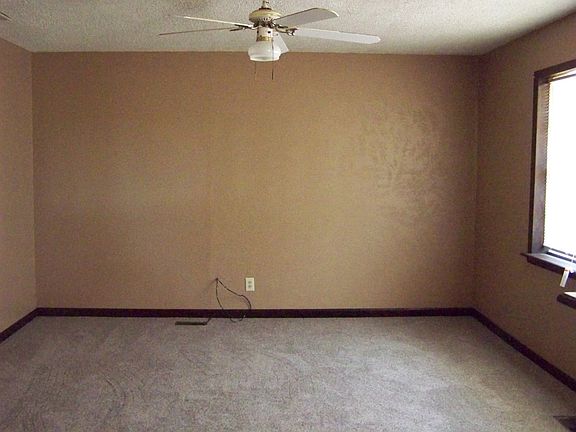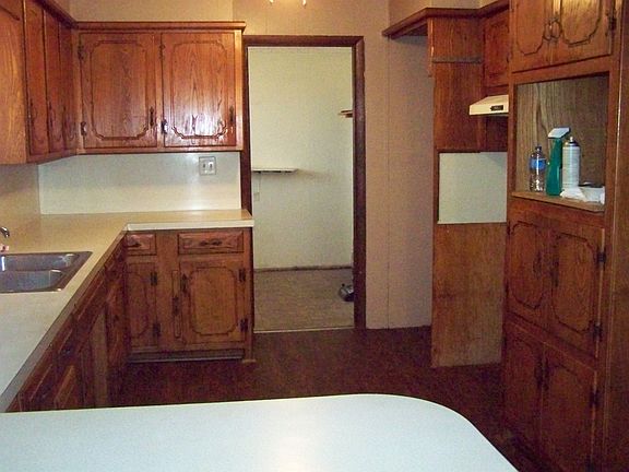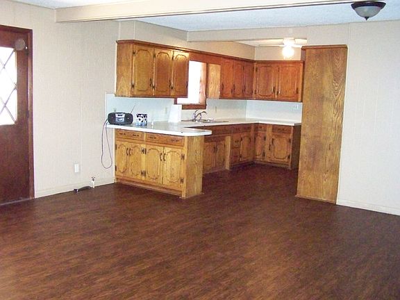 1746 sq ft, 3 bedroom 2 bath brick home located on 2.43 acres. Vinyl flooring and newer beige carpet throughout. Kitchen with large dining/family room. 2 car attached garage, large utility room. Home has metal roof, CH/A, rural water and REC electric. There is a storage building that needs siding work, storm cellar and propane tank.