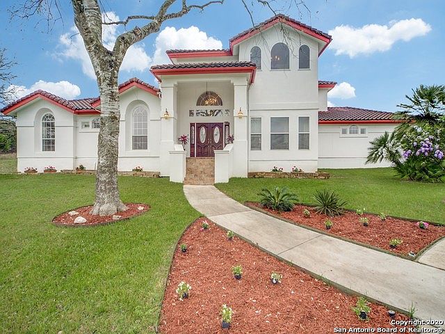 Beautiful mediterranean home with 5.47 acres of end of cul-de-sac privacy. Home is bathed in natural light, lovely views, horses allowed. Stone patio out back for easy entertaining. Interior and exterior recently painted, front iron fence painted 06/2020. Upstairs master is beautifully appointed with FP & stunning views of property. 2 bdrms dwn-1 currently used as study (other could easily be 2nd master). Plantation shutters, back sunroom with high-custom ceiling. Relax in the alcove off dining room or sunroom while enjoying country vws. Purchase Country Club mbrshp and enjoy golf, tennis, pool, dining, clubhouse (attached in additional info)