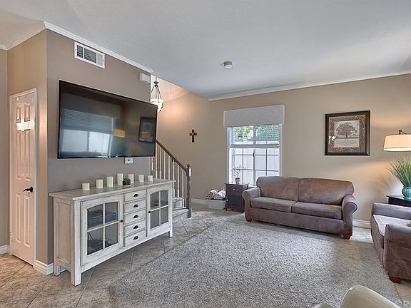 Fantastic opportunity in the highly desirable Brock Canyon Villas! Beautiful town home, with a great corner location. This town home has 3 bedrooms, 2 and 1/4 baths, and is approx. 1492 sq ft. Living room has stunning valances, crown molding, fresh paint and fireplace with decorative mantel. Kitchen has bonus counter top /cabinet area, recessed lights and updated tile counter tops with neutral back splash. Master bedroom has huge walk-in closet with professional organizers and laminate wood floors. Master bathroom has an oval soaking tub and shower, updated light fixtures and sink hardware. Second bathroom has tub/shower combo, updated light fixture and mirror. Downstairs bath is complete with newer vanity, decorative mirror and light fixture. Additional updates include full copper re-pipe, tile flooring downstairs and ceiling fans in each bedroom. This town home has a 2 car attached garage and spacious patio/yard area with artificial grass, concrete pad and paver stones. Enjoy the community pool and spa. Close to shopping and dining. This home is a must see!