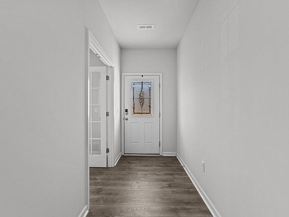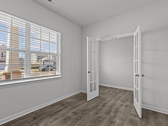 This home, located in Creedmoor, NC, is nestled on a cul-de-sac and occupies just over a quarter-acre lot. Perfect for entertaining, it features a formal dining room and a versatile flex space. The open-concept layout includes a breakfast nook with a large island, where bar stools can be added for extra seating. The kitchen boasts white cabinets, granite countertops, and a tile backsplash. Luxury vinyl plank flooring graces the main floor, while carpet adds comfort to the loft and bedrooms on the second level. A spacious loft provides additional living space. The large owner's suite, complete with an owner's bath featuring a shower, double sinks, a separate water closet, and a walk-in closet, adds a touch of luxury. Three more bedrooms, each with ample closet space, complete this inviting home.