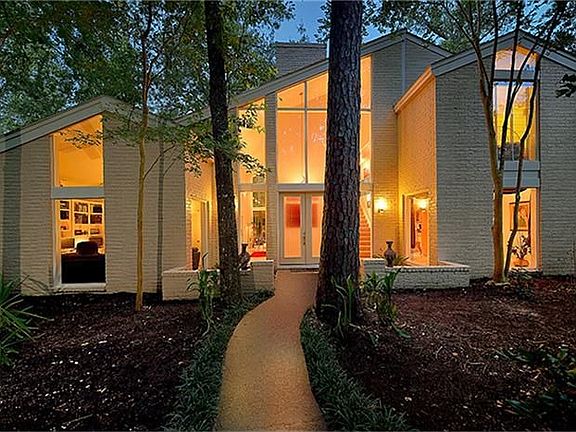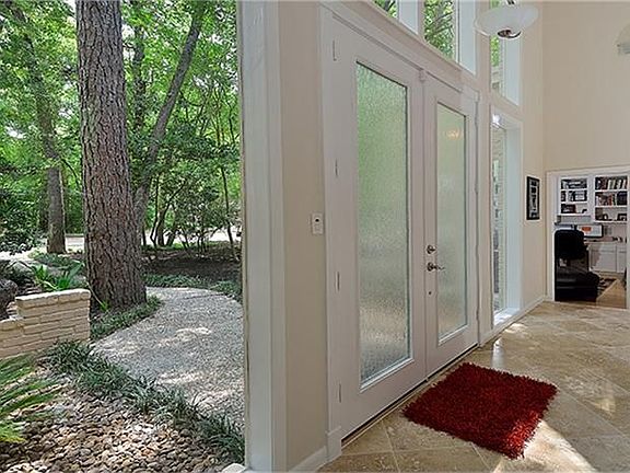 Stunning contemporary home on a cul-de-sac, wooded lot in Grogan's Mill! Soaring ceilings, Travertine flrs, new carpet, recent int/ext paint & new ext doors. Gourmet island kitch w/granite counters, bkfast bar, 2nd sink/prep area, Kent Moore cabinets, wine cooler, custom lighting & GE stainless Monogram appl's opens to bkfast rm; elegant formal dining; den w/gaslog FP; private study; mstr suite down; 3 bdrms & gmrm up w/built-ins; private yard w/heated pool & spa, outdoor speakers & lighting.