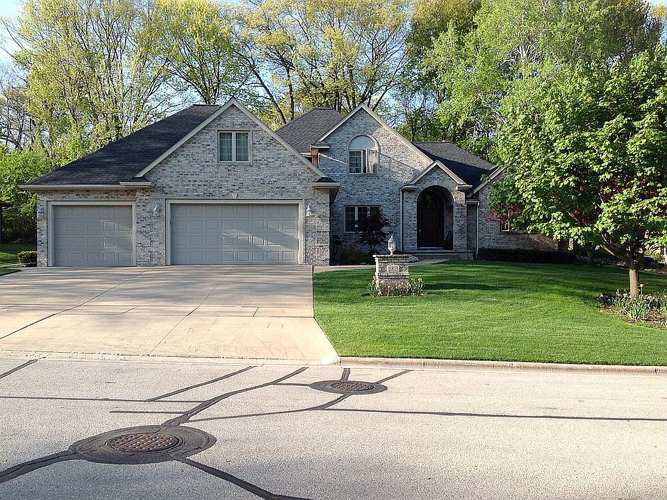 Spacious 5 bedroom home. Dramatic great room w/fireplace. Master suite on 1st floor - w/2w-in closets, jetted tub, dual vanities. Gourmet kitchen w/stainless appliances-double ovens, granite counters. Formal dining room, 4-season room w/deck access. 1st floor laundry. LL-custom bar in large family room, egress windows. Basement steps to 3-stall garage w/OH door to backyard. Great landscaping!