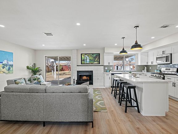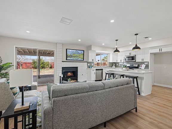 Come home to this newly renovated beautiful Palmdale home located on a private, quiet cul-de-sac street just 5 minutes from the 14 freeway. As you enter this one story home, you will feel the welcoming fireplace nestled next to the family room and open concept kitchen. The entire inside of this home has newer large plank luxury vinyl flooring installed throughout. The kitchen is open to the family room and includes all newer stainless steel appliances, quartz countertops, subway tile backsplash and pendant lighting. The cabinets are brand new as well as the sink and all the fixtures. On the left side of the home, down the hall there is extra storage and quartz countertop cabinets. There are 2 completely renovated bathrooms, including newer tub, vanity, lights and light up mirrors. The master bedroom has mirrored closet doors and has its own entrance to the master bathroom. Next to the dining room, there is a bonus room that could be used as a 4th bedroom/office/game room or whatever. This room has its own separate entrance as well and its own en suite bathroom with newer toilet, vanity and shower. In addition, there is an extra room next to the washer and dryer area. This extra space could be for storage, and office or whatever and has a door to the garage. This home is priced to sell.