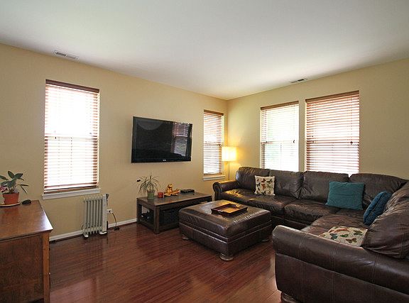 Spacious end unit townhome boasts gleaming brazillian cherry flooring throughout. Generously sized living room opens to dining area. Fully applianced kitchen features designer ceramic tile flooring, maple cabinetry, newer stainless steel appliances & brand new counters. First floor den. Three ample sized bedrooms share the second floor. All offer great closet space, lighted fans & 2' slat blinds. Luxury master bath has double basin vanity, soaker tub, separate shower & commode room. 2 car attached garage. Rent included lawn care, snow removal, pool, tennis courts, clubhouse. Utilities are tenant's responsibility. @properties application/credit report/background/eviction check req'd. First month rent + $100 processing fee & one month's security deposit due with signed lease. Available august 1. No pets. No smokers.