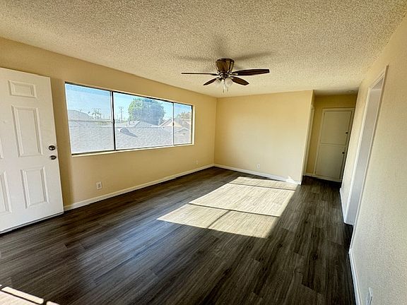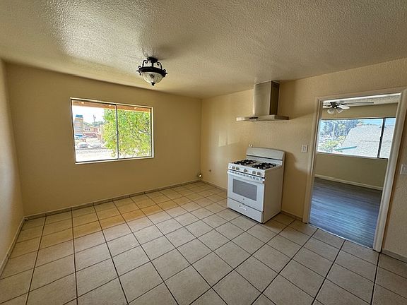 Bright and airy upstairs apartment with laundry hookups in kitchen, large rooms, spacious kitchen, lots windows with rooftop views, updated bath, new paint and hard flooring, assigned carport, secured gated small complex; and within walking distance to schools. Tenant pays for electric and gas