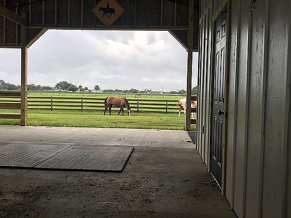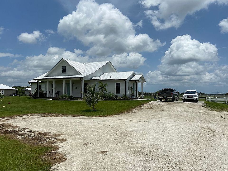 Custom built CBS home; tin roof; PGT Windguard Windows; fully fenced with 6+ ac fenced with Red Brand horse fence; 4 stall horse barn with feed/hay and tack room with AC, auto waterers in all stalls, fans and electric, 60 ft round pen; salt water pool; chicken coop and shed; crown molding; coffered ceiling; insulating foam in attic; peroxide water system; Hardy Plank siding; tongue and groove pine ceiling on front and back porches; new exterior paint in 2020; large pond in rear pasture; WiFi in house and barn;