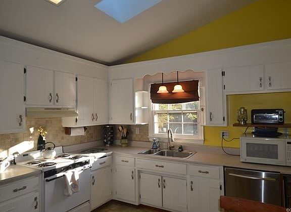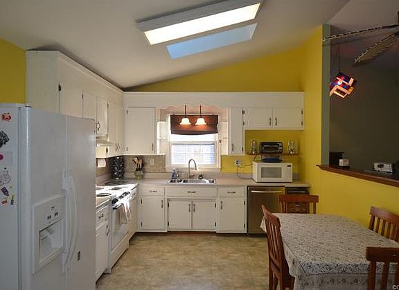 Open Floor Plan! Beautiful, well maintained home. NEWER ROOF 2009! Fresh Paint, inside and out. Newer flooring. Family room open to eat-in kitchen with gorgeous, Vaulted Ceiling and Skylights. Private FULL Master Bath. Covered Sitting Porch. Ceramic Tiled Showers with 2 year old flooring. Rear Deck overlooking Fully Fenced rear yard. Detached shed with Electricity. Pull down attic for additional storage, and tall crawlspace. VERY convenient to highways, shopping, and hospital.