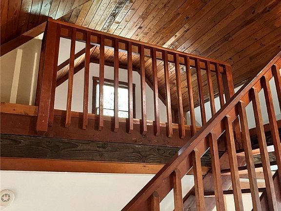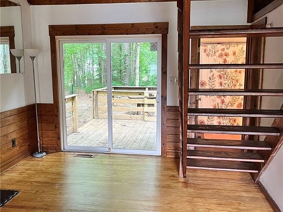 What a cool house! Contemporary on a quarter acre lot, perched on a hill top. It feels like your own little slice of heaven when you're sitting on the full front porch. Walk inside to natural wood floors and freshly painted walls. The kitchen has been updated with stainless steel appliances. The living area has a wood burning fireplace and sliding glass doors to a multi-level deck. There is a bedroom downstairs that could serve as a home office. The large bathroom is connected to a laundry area. Upstairs is a loft bedroom that overlooks the downstairs. Although no known defects, home is being sold "as-is." Inspections are welcome but will be for informational purposes only.