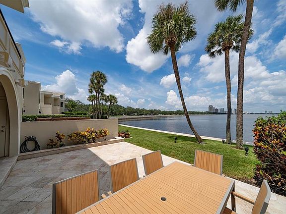 A elegant and contemporary, direct waterfront townhome with sweeping views of the Hillsborough Bay and Tampa’s city skyline. Located in Hawthorne Point, a gated private community with only ten owners and situated just off Bayshore Boulevard. This townhome features exceptional quality and exquisite design details. This open concept floor plan is ideal for entertaining. The kitchen has been remodeled with solid wood, custom-built cabinetry, granite countertops and stainless steel appliances. Other features include crown molding, travertine tile floors downstairs, wood floors upstairs, built-in bookshelves/cabinetry and a wet bar, complete with a wine cooler and an elevator. New hardwood flooring in the second floor and AC is less than 5 years old. The owner’s retreat features a very spacious walk-in closet with a custom closet system, electric window shades and a balcony overlooking the water. Carry the entertaining outside onto the spacious travertine tiled patio, equipped with surround sound and custom lighting. Enjoy the dolphin, stingray or manatee sightings right off your seawall! This is truly a special property and a rare opportunity to buy into this exclusive community.