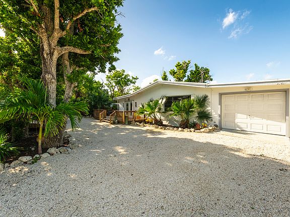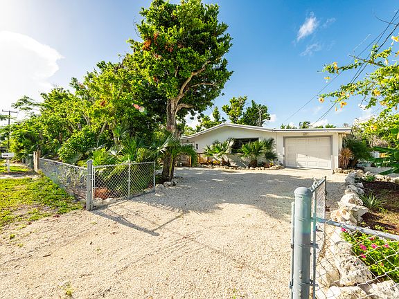 Beautiful concrete two bed one bath home on fenced in half acre double lot. Stainless steel appliances, central ac, lots of closet space. Tile floors throughout. Sliders and huge windows in every room so you can enjoy the paradise that is keys living. One car garage with storage cabinets and workshop make for a handy man's dream. Huge air conditioned walk in laundry room off garage with cabinetry and tons of storage space. Over 800 square feet of deck space. Beautiful Spanish oaks, gumbo limbo and fruit trees on property. Home equipped with a 250 gallon propane tank that runs a full house generator, and BBQ. This is a beautiful one of a kind property with tons of land you rarely find in the Florida Keys.