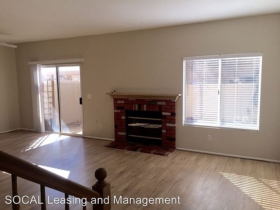 Spacious 3 Bedroom Townhome in Santa Clarita, CA - Spacious three bedroom townhome in Santa Clarita, CA with nice yard. This home features wood laminate flooring throughout the downstairs living space. Carpet in the bedrooms and newer linoleum in the guest bath and master bathrooms. Nicely landscaped walkway leads to the entryway. The living room has a brick fireplace. The dining area has a sliding glass door leading to nice backyard with brick lined patio and yard with nice lawn. The kitchen has light wood cabinetry, tile counter tops, a breakfast bar and a door to the attached two car garage. Kitchen appliances include: stove and dishwasher. A half bathroom is off the living room with tile flooring. Two guest bedrooms upstairs. Full guest bathroom with linoleum flooring. The master bedroom has a walk in closet, vaulted ceilings and an attached full bathroom. This townhouse is located just across from the HOA pool and spa, guest parking and nice park like greenbelt. No Cats Allowed (RLNE3787842)