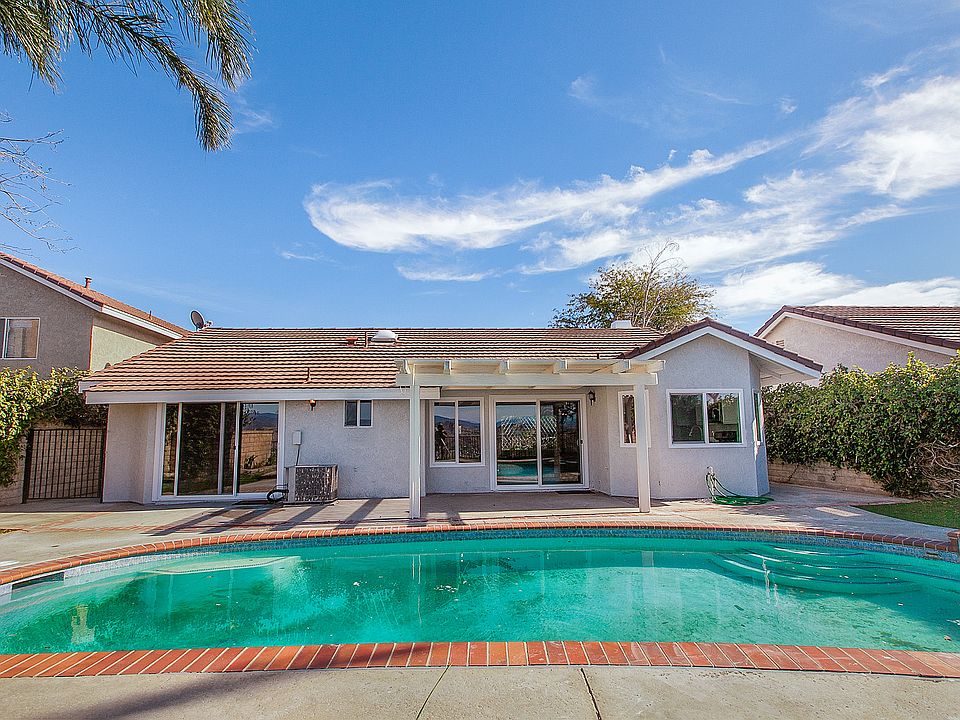 SINGLE STORY... VIEWS GALORE... TURNKEY CURB APPEAL! Doesn't get much better than this turnkey home perched at the top of a hill in the quiet and friendly American Beauty Highlands neighborhood. Approach the home to see beautiful lead paned front windows behind the upgraded landscaping; new concrete patio and fresh sod all easy to maintain with automated sprinkler and drip systems! Enter the light and bright turnkey home lined with newer windows and sliders with custom shutters and coverings, high ceilings, newer flooring and kitchen open on to the dining and family rooms with sliding door access to the spacious backyard with pool, hardscape, dog run and VIEW VIEWS VIEWS! Home is upgraded with a newer pool pump motor, A/C condenser, pex plumbing, and all newer Frigidaire appliances. Take advantage of the extra storage space added in the garage rafters as well as above each of the bedroom closets! Sneak away to the bedroom wing of the home, each of the bedrooms featuring neat and clean laminate floors, high ceilings and large closets and plenty of storage. The main bedroom features its own sliding door access to the yard as well as attached bathroom suite with upgraded fixtures and quartz counters. All of this and conveniently located just minutes away from parks, schools, Bouquet Center Shopping, Sams Club, Sports Complex and the 14 freeway making this home Santa Clarita living at it's FINEst!