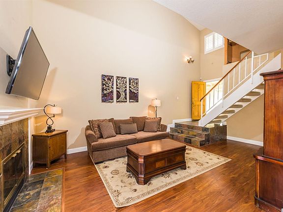 Fantastic townhome located in the Mountain View Courtyard Community. Step inside this warm and inviting open floor plan with high ceilings and a cozy stone fireplace. Tastefully upgraded flooring with a kitchen opening to the dining area make this home a great find. Open spacious private patio with room for a BBQ, and a second level balcony are just a few more features. 2 car garage with laundry inside, low hoa, community swimming pool and jacuzzi... Come see for yourself!