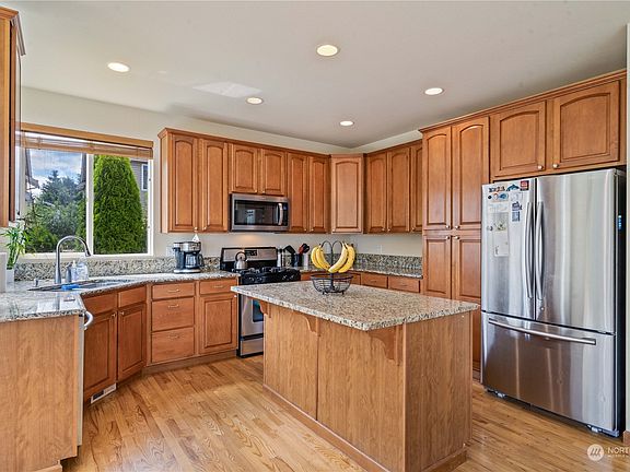 Sought after Glacier Valley home, 5 bedrooms + large bonus room, loft area and 3.5 baths. Huge master suite with walk-in closet. Bedroom on main level with own full bath. Kitchen has granite counters, SS Appliances, ample cabinet space and hardwood floors. Great location close to Four Corners, community playground, parks, walking trails and golf courses. Located in award winning Tahoma School District! This home is a must see to be truly appreciated.