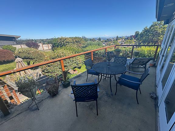 Step into timeless style and comfort in this charming mid-century home. Featuring clean lines, original hardwood floors, and large picture windows that fill the space with natural light, this well-maintained residence blends classic design with modern convenience. The open living and dining areas create an inviting flow, perfect for both relaxing and entertaining. Tucked into a quiet dead end street with gorgeous views of Rainier and the Sound, this home offers easy access to Magnolia's shops, parks, and restaurants. It even includes a rare 2 car garage and a huge, beautiful yard (lawn maintenance is paid by Landlord!). Lower level has a 2nd full kitchen - ideal for a guest's quarters. Central A/C for the summer and 2 cozy wood burning fireplaces for the winter. A perfect blend of character and convenience ready for you to move in and make it home. Lawn and yard maintenance will be paid for by the Landlord (included in base rent). Tenant responsible for all utilities. No smoking inside or outside. One well mannered dog is possible/negotiable (well mannered matters more than size). Zillow rent estimate is $6,200 but listing for $5,850.
